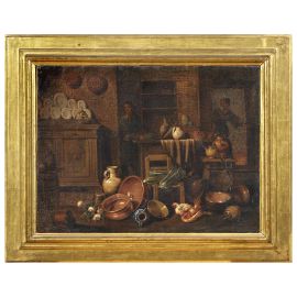 SCENA DI INTERNO CON VASELLAME E ORTAGGI