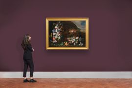 NATURA MORTA CON FIORI E FRUTTI ALL'APERTO