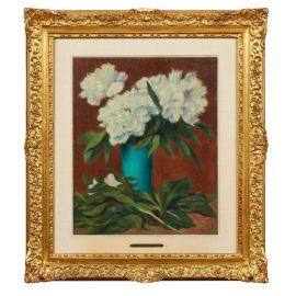 on the reverse, of the frame: label "Zandomeneghi / n 10852 / pivoines blanches" upper right; label: "73 / Zando / pivoines blanches vase bleu" upper left