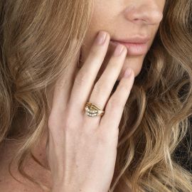 in oro giallo e bianco 18kt, impreziosito da pietre sintetiche incolore, punzoni 750 e del fabbricante, mis. 15/55, gr. 7