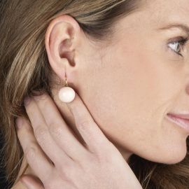 realizzata ad un filo di boules in corallo rosa di mm 6 circa, fermatura in oro giallo 18kt, punzone 750, lungh. cm 42, con paio di orecchini in oro giallo 18kt, composti da due boules in corallo rosa di mm 15 circa, punzoni 750 e del fabbricante, dim. cm 1,5x2 circa; accompagnati da un secondo paio di orecchini in oro giallo 18kt, da cui pendono due elementi in corallo inciso di forma circolare, dim. cm 2,5, gr. 40 complessivi