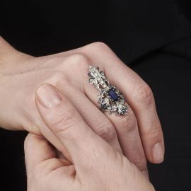 in oro 14kt, impreziosito da zaffiri taglio rettangolare e rotondo per ct 3 circa e diamanti taglio brillante per ct 17/57, gr. 8