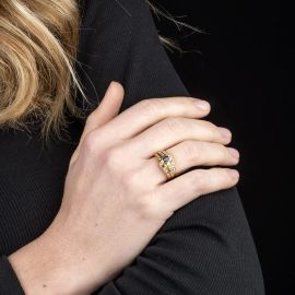 SAPPHIRE AND DIAMOND RING IN 18KT YELLOW GOLD