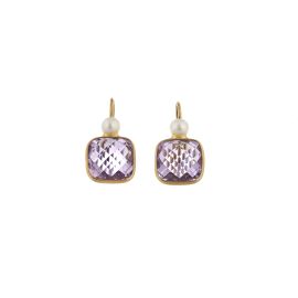 SYNTHETIC RED STONE RING WITH AMETHYST AND PEARL DROP EARRINGS IN 18KT GOLD
