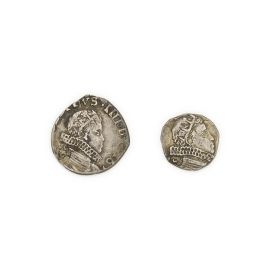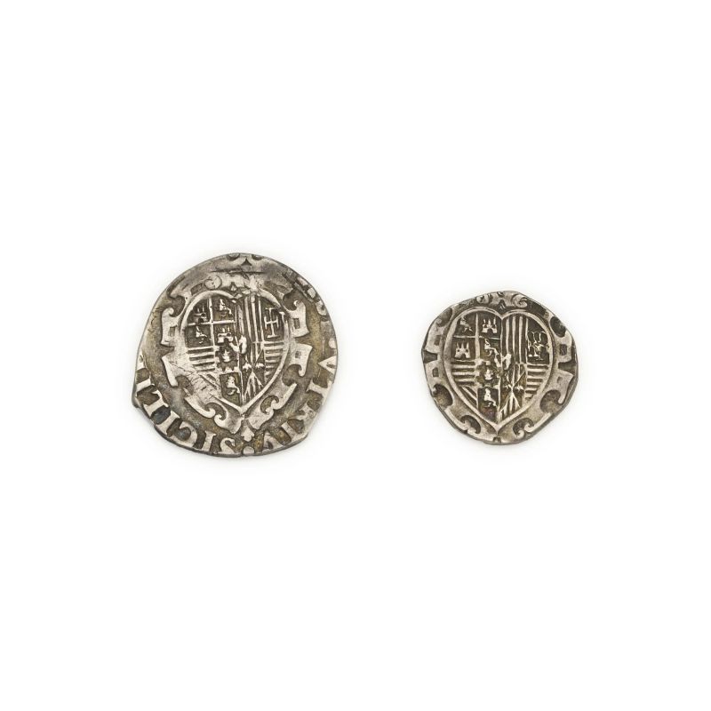 D: busto con gorgiera a destra – R: stemma coronato entro cartella a forma di cuore – gr. 4,43 – Bella patina, q.BB – In lotto con un secondo esemplare tosato - (MIR n. 245) (Ag)