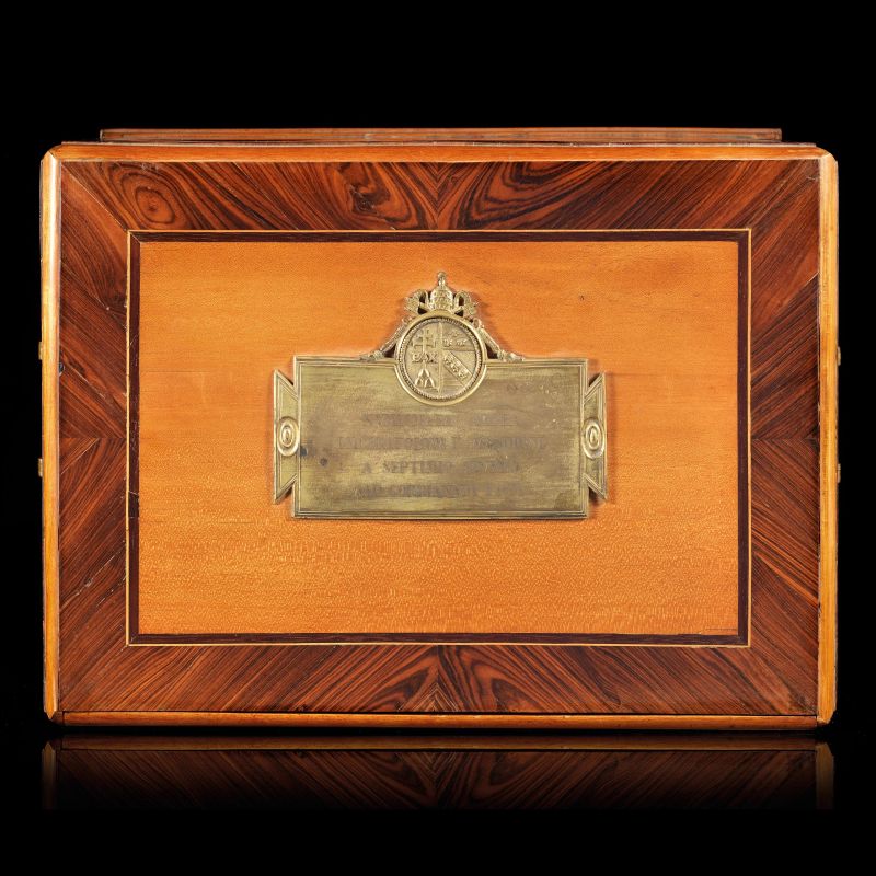 ll medagliere proposto è una parte di quello inizialmente raccolto da Papa Pio VII poiché l'intero gruppo fu smembrato a seguito dell'occupazione francese del Quirinale nel 1809 e, una volta ricostruito, smembrato nuovamente con l'occupazione dell'Abbazia di S. Maria del Monte a Cesena il 20 gennaio 1832. A seguito di tali vicende, i contenitori superstiti sono i quattro che compongono il lotto e così sono rimasti nelle disponibilità della famiglia Chiaramonti dal 1934 ad oggi.