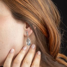 AQUAMARINE AND DIAMOND DROP EARRINGS IN 18KT WHITE GOLD