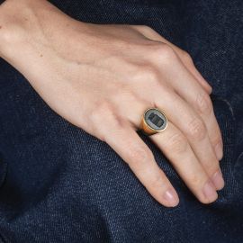 in oro giallo 18kt, impreziosito da un diaspro nero con stemma inciso, mis. 9/49, gr. 11