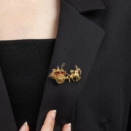 CARRIAGE-SHAPED BROOCH IN 18KT YELLOW GOLD