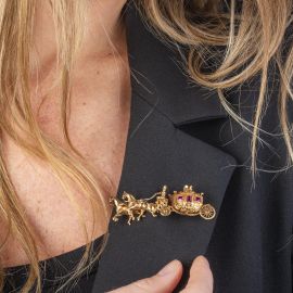 CARRIAGE-SHAPED BROOCH IN GOLD