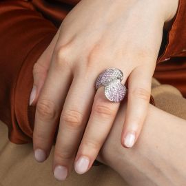 ANELLO A FASCIA ONDULATA CON DIAMANTI E ZAFFIRI ROSA
