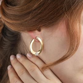 in oro giallo 18kt, impreziositi da diamanti taglio brillante per ct 0.50 circa, punzoni 750 e del fabbricante, chiusura a farfallina, dim. cm 2,5x3,5 circa, gr. 12 complessivi