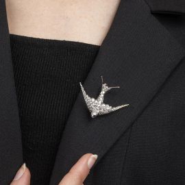 DIAMOND SWALLOW-SHAPED BROOCH IN 18KT WHITE GOLD