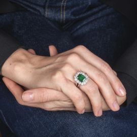 EMERALD AND DIAMOND DAISY RING IN 18KT WHITE GOLD