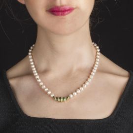 EMERALD AND DIAMOND PEARL NECKLACE IN 18KT YELLOW GOLD