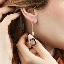 LONG FUME QUARTZ DROP EARRINGS IN 18KT YELLOW GOLD