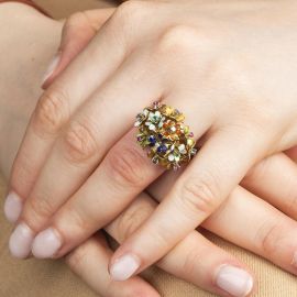 MULTI GEM FLORAL RING IN 18KT YELLOW GOLD
