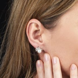 PEARL AND DIAMOND EARRINGS IN 18KT WHITE GOLD