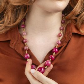 in oro giallo 18kt, realizzata a catena, con una serie di sfere in giada digradanti di mm 19-9 circa, punzone 750, lungh. cm 57, gr. 88