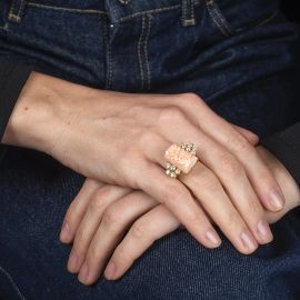 ROSE CORAL AND DIAMOND RING IN 18KT YELLOW GOLD