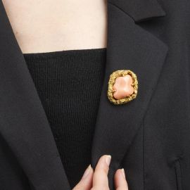 ROSE CORAL BROOCH IN 18KT YELLOW GOLD
