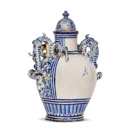 GRANDE VASO BIANSATO CON COPERCHIO, ITALIA MERIDIONALE?, SECOLO XIX