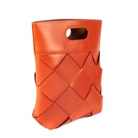 Meravigliosa la lavorazione con il largo intreccio della pelle color arancio, modello per fashionista.