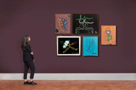 tempera on purple paper