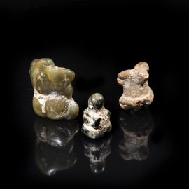 Tre piccoli idoli con sembianze femminili, in terracotta, pietra grigio scura e verde. I tratti caratteristici sono stati realizzati ad incisione. La più particolare, quella in pietra verde, è accostabile alle tipiche rappresentazioni votive della Dea Madre.