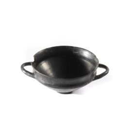 Kylix caratterizzata da due anse ad anello innestate ai lati della vasca. Essa si presenta troncoconica, orlo sottile e piccolo piede ad anello.