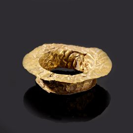 Supporto realizzato in lamina d'oro di medie dimensioni. Sia l'anello di alloggiamento superiore che l'anello di supporto inferiore riusultano mantenere ancora le forme originali. Spesso utilizzato come base di appoggio per gli alabastra in pasta vitrea.