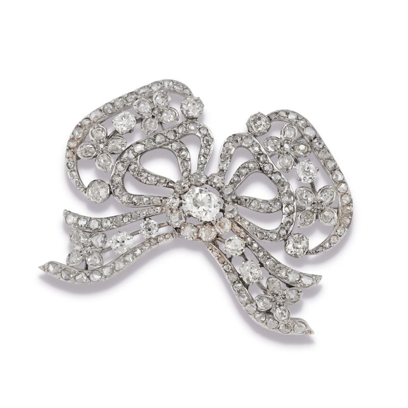 BOW-SHAPED BROOCH WITH DIAMONDS