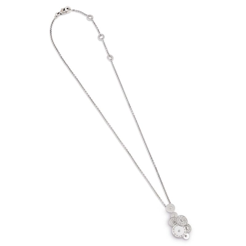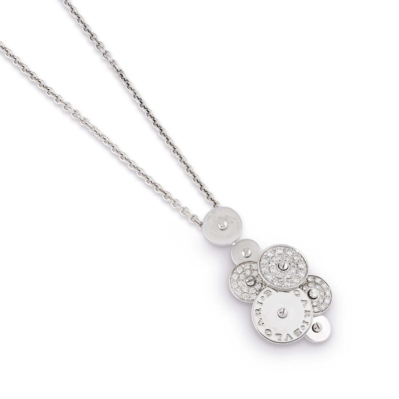 in oro bianco 18kt, con pendente, con diamanti taglio brillante per ct.0.90 circa, firmata Bulgari, punzone 750 e del fabbricante, lungh. cm 46, gr. 15