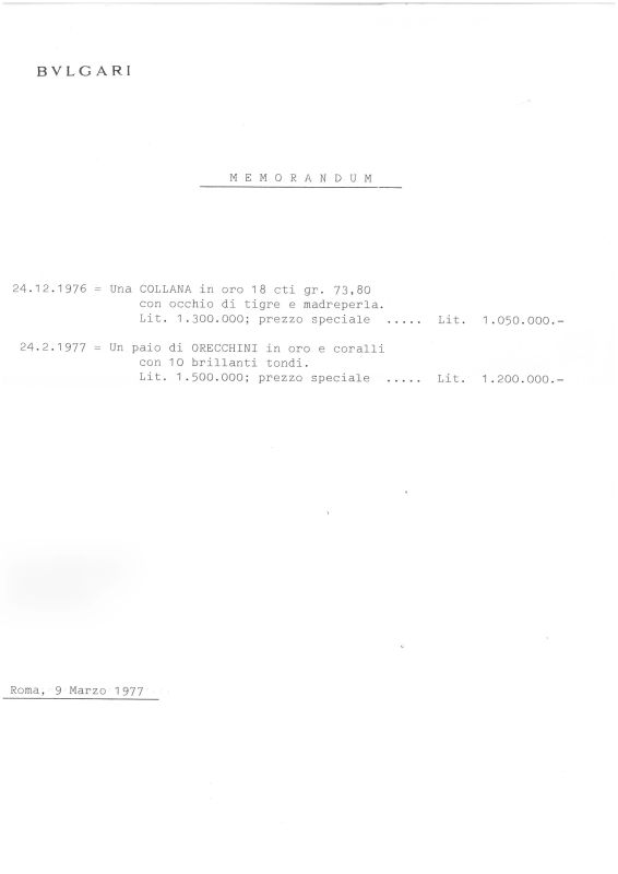 in oro giallo 18kt, impreziositi da boules in corallo di mm 5 circa e diamanti taglio brillante per ct 0.40 circa, firmati Bulgari, chiusura a clip, dim. cm 2,5x2,5, gr. 30 complessivi. Corredati di memorandum di acquisto del 9/03/1997.