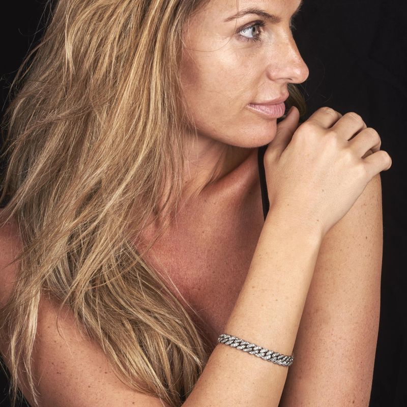 BULGARI DIAMOND CURB CHAIN BRACELET IN 18KT WHITE GOLD