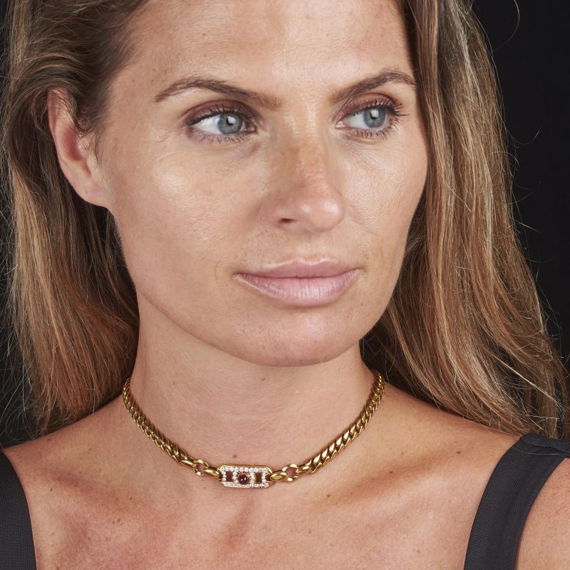 BULGARI COLLANA MAGLIA GROUMETTE CON RUBINO E DIAMANTI