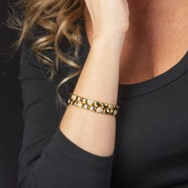 in oro giallo 18kt, composto da due file di cuori, con pavè di diamanti per ct. 2.10 circa, firmato Cartier, punzone 750 e del fabbricante, lungh. cm 18, gr. 49. Corredato di scatola.