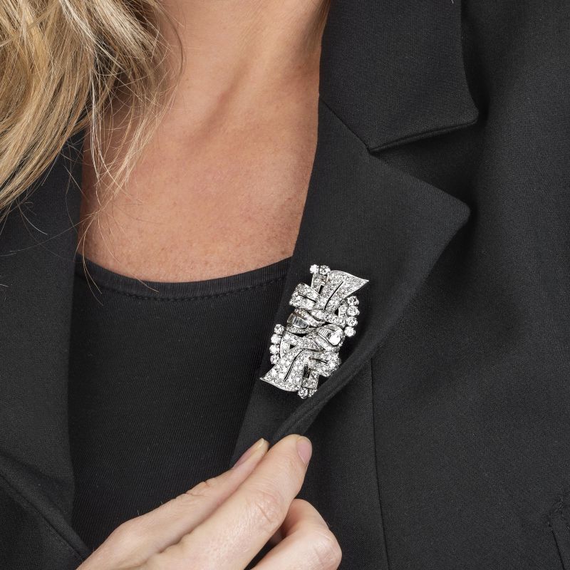 DOUBLE CLIP BROOCH WITH DIAMONDS
