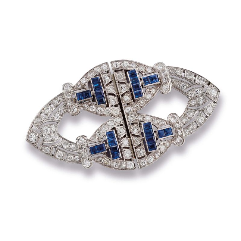 DOUBLE-CLIP BROOCH WITH DIAMONDS AND SAPPHIRES