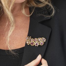 FURST SPILLA FLOREALE CON DIAMANTI E RUBINI SINTETICI