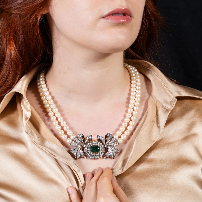 GIROCOLLO DI PERLE CON SMERALDO E DIAMANTI