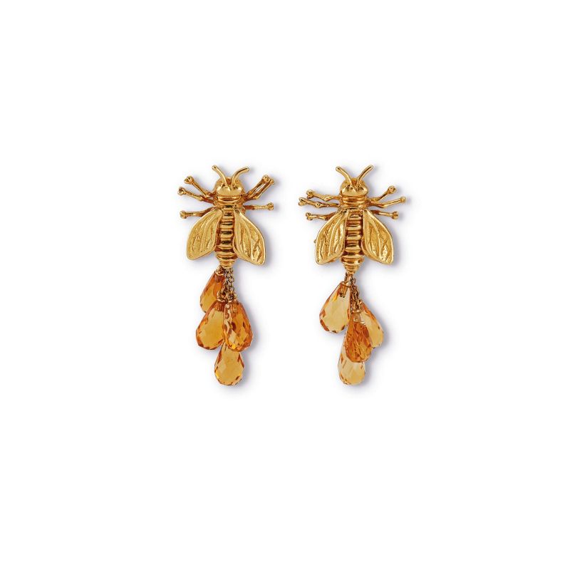 PAIO DI ORECCHINI A FORMA DI APE CON QUARZI CITRINI
