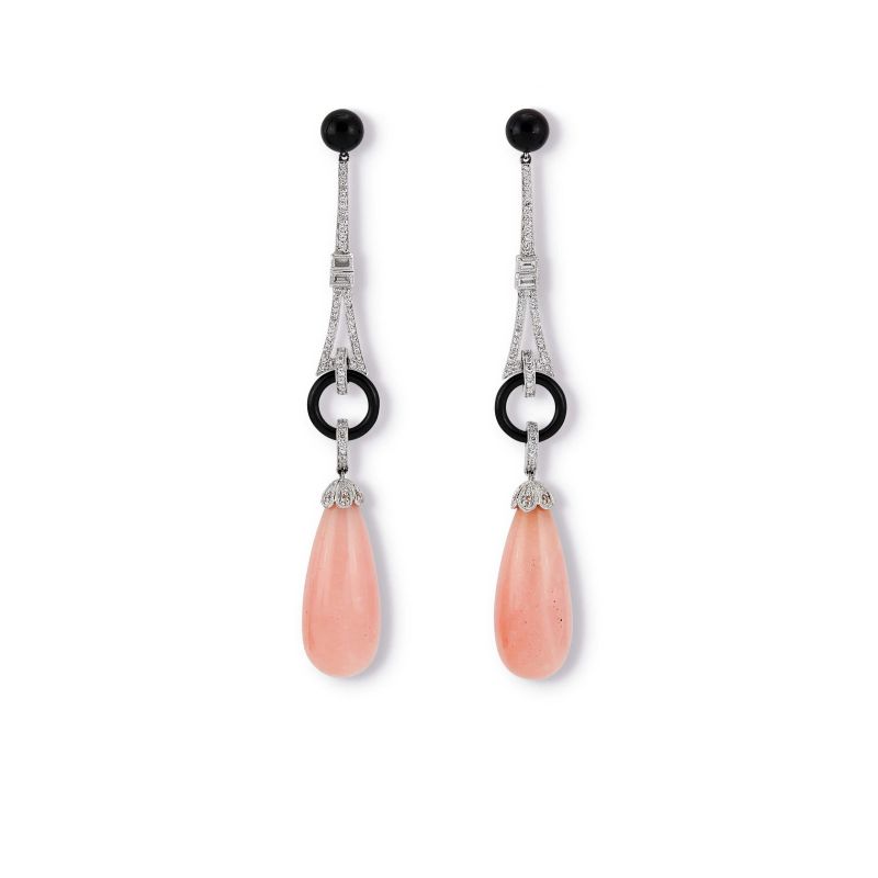 PAIR OF LONG DIAMOND AND OPAL EARRINGS
