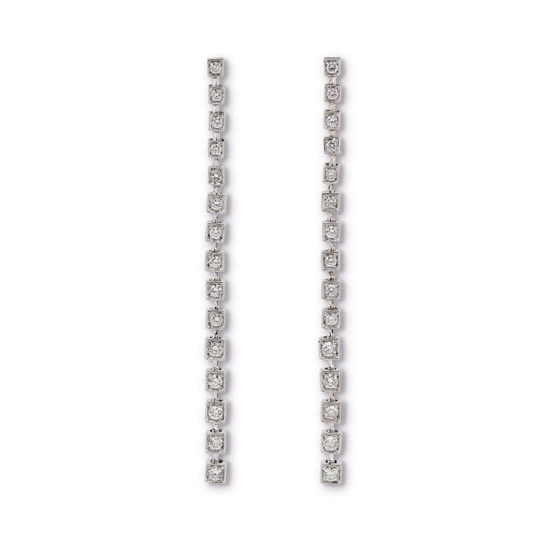 PAIO DI LUNGHI ORECCHINI IN ORO BIANCO CON DIAMANTI