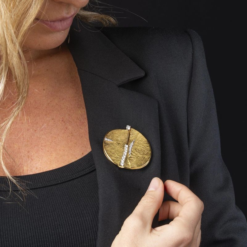 REILING DISC-SHAPED DIAMOND BROOCH-PENDANT