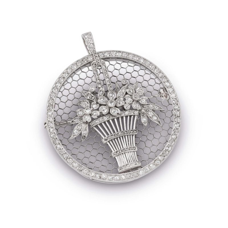 ROUND SHAPED BROOCH-PENDANT WITH DIAMONDS
