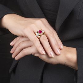 RUBY AND DIAMOND BAND RING IN 18KT YELLOW GOLD