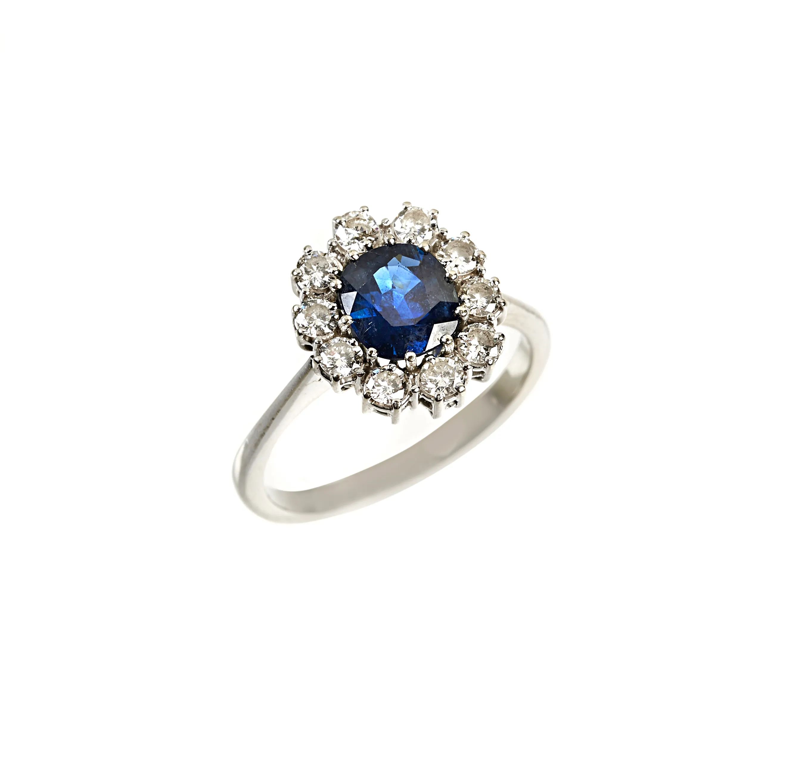 ANELLO A MARGHERITA CON ZAFFIRO E DIAMANTI