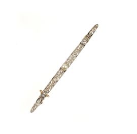 BAR BROOCH WITH PEARL AND OLD-CUT DIAMONDS