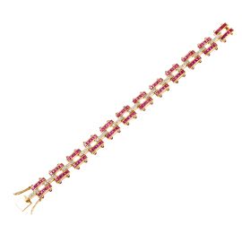 SYNTHETIC RUBY AND DIAMOND BRACELET IN 18KT YELLOW GOLD
